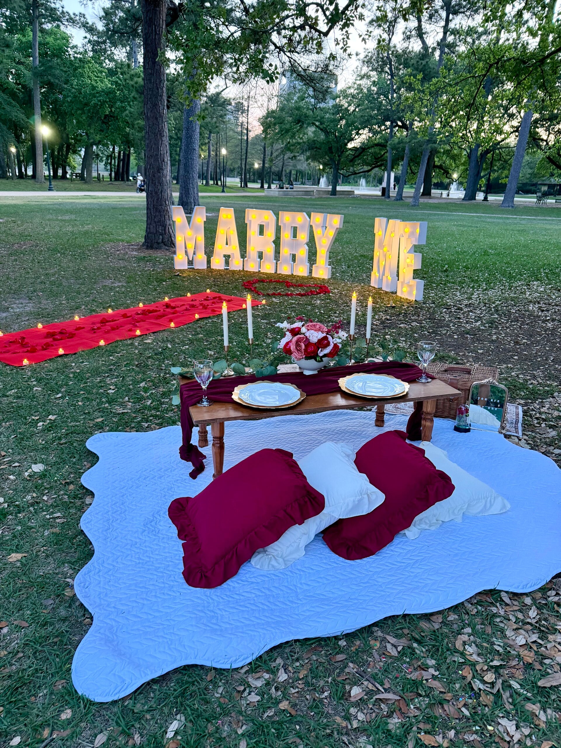 At It’s a Date Luxury Picnics, we create more than just proposals—we design unforgettable moments filled with intention, romance, and style. Our proposal setups are thoughtfully curated to bring your vision to life, whether you’re planning something intimate and heartfelt or grand and luxurious.